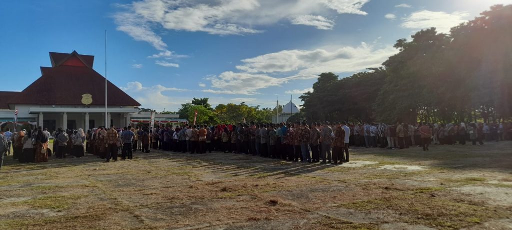 Dihadiri para staf ahli, asisten, dan dipimpin oleh Penjabat bupati Buru Bpk. Dr. Djalaluddin Salampessy,S.Pi.,M.Si memberikan arahan pada apel pagi yang dipimpin oleh kepala SATPOLPP selaku komandan upacara serta para pimpinan OPD sebagai Komandan regu masing-masing Dinas.
